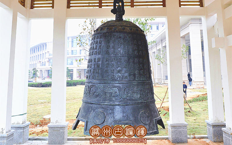 警示鐘,通高2米,下部口徑1.4米,上部鈕高0.3米,總重約1600公斤。襄陽市檢察院定制,警世鐘是本次青銅器訂單當中,規(guī)格最大,文字最多,要求最高,用銅最重的器物,他的制作工藝如果運用我們的失蠟精密鑄造法,反而達不到精良效果,因而我們聘請了多位專家指導,運用最先進復合型精密鑄造工藝,其中使用陶瓷型技術制作鐘外模,運用樹脂砂工藝做鐘內(nèi)心,因而得到了完好鐘體外形,保證了發(fā)音的渾然一體,精細的紋飾反映了獨特的地域歷史文化。